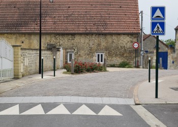 Aménagement du cheminement piéton menant aux écoles et à la crèche Mise en sécurité des trottoirs avec mise aux normes PMR Création d'un ralentisseur